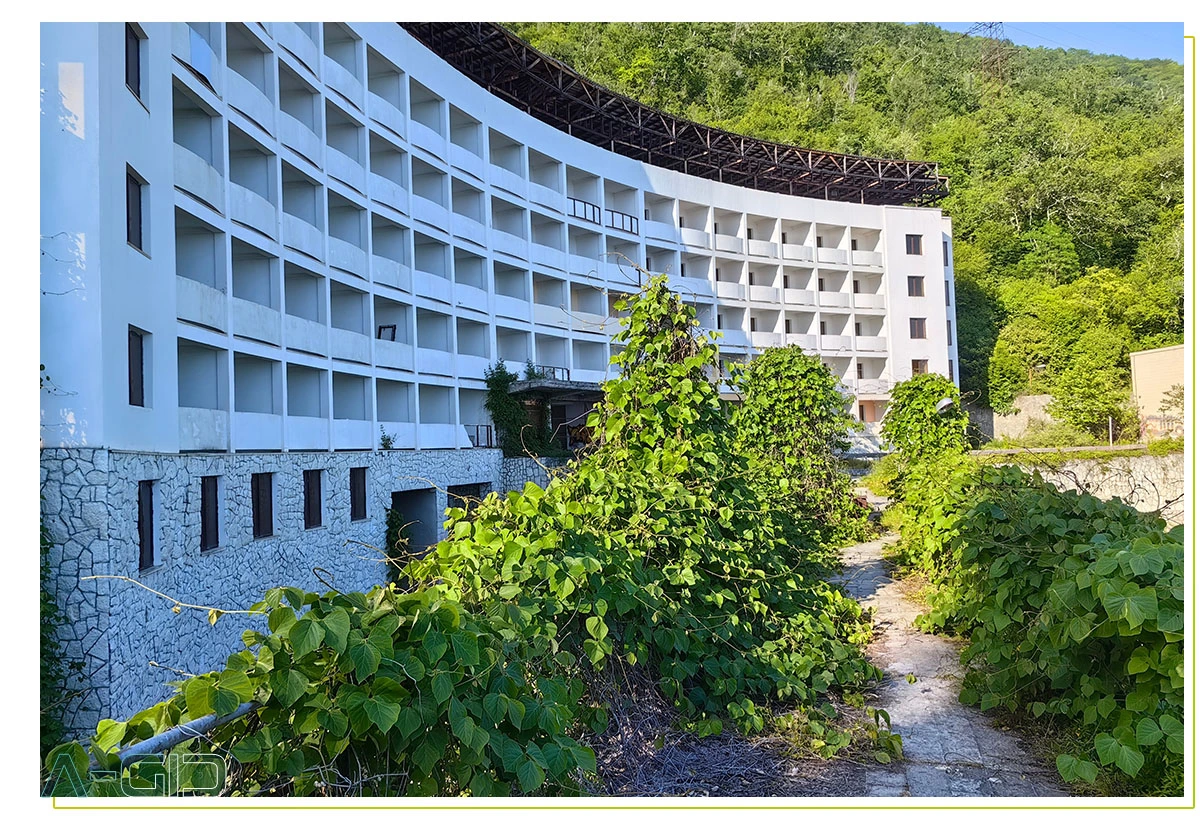 Построенный в конце 1960-х годов, пансионат Скала в Гагре стал одной из ведущих здравниц своего времени. Его корпуса возвышались над морем, был собственный фуникулёр, столовая, лечебные корпуса — всё это объединяло комфорт, пейзажи и здравоохранение. Сегодня часть зданий закрыта или реставрируется, однако массивная архитектура, арки, лестницы и панорамные террасы всё ещё впечатляют. Этот комплекс — не просто место отдыха, а памятник курортной истории Абхазии, который рассказывает о том, как жили, отдыхали и лечились когда-то.